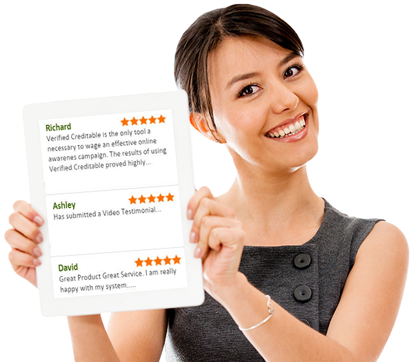 Verified Credible takes the verified reviews that your customers have submitted and "pushes" them to the top review sites to increase your star ratings.  During the review collection process, your customers give Verified Credible permission to post their review anywhere on the web.